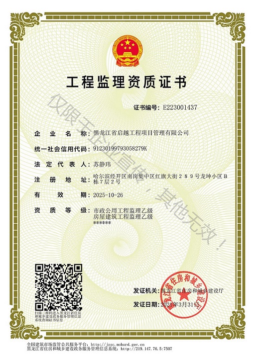 黑龍江省啟越項目咨詢集團有限公司,成立于2006年10月17日,具有中華人民共和國住房和城鄉(xiāng)建設部頒發(fā)的工程招標代理機構甲級資質(zhì)、工程造價咨詢企業(yè)甲級資質(zhì);黑龍江省住房和城鄉(xiāng)建設廳頒發(fā)的房屋建筑工程監(jiān)理資質(zhì)及市政公用工程監(jiān)理資質(zhì);黑龍江省司法廳頒布的司法鑒定許可證;中國政府采購網(wǎng)登記注冊的政府采購代理機構。我公司是專業(yè)從事工程類招標代理服務、政府采購項目類招標代理服務、工程造價咨詢服務、工程造價司法鑒定服務、工程監(jiān)理服務及建設項目全過程跟蹤管理的工程技術服務咨詢企業(yè)。